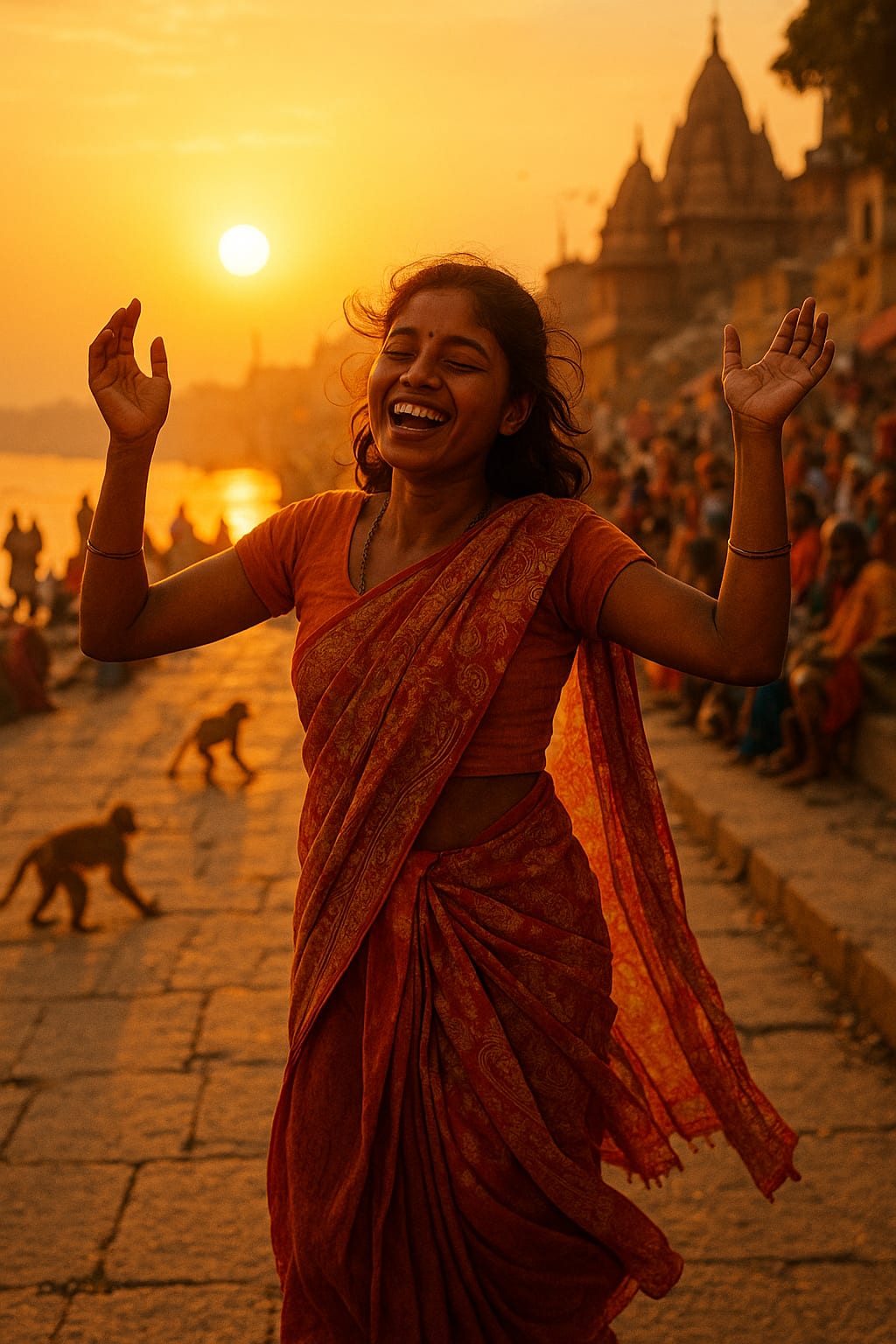 India, my love, your mesmerizing scent, atmosphere, and warmth draw me in. Music, songs, and smiles are everywhere, especially where the poorest struggle for coins for their first morning meal. Their laughter fills my heart with joy when they see that I am not leaving, pure, loving joy in this world, abandoned by so many people who do not want to discover the truth between the harsh nuances of wealth and poverty, their energy is strong and pure, there is no fear in it, there is courage, hope, and fortitude for the better every day, there is also a lot of evil, but today I want to feel you like a beautiful song, today I want to fly to the rhythm of your beautiful sunrise, welcoming the light that illuminates all the people around and brings joy and smiles to the whole country, at least for now, let's take this joy into our hearts and bring smiles where suffering, sadness, and pain have reigned for too long.