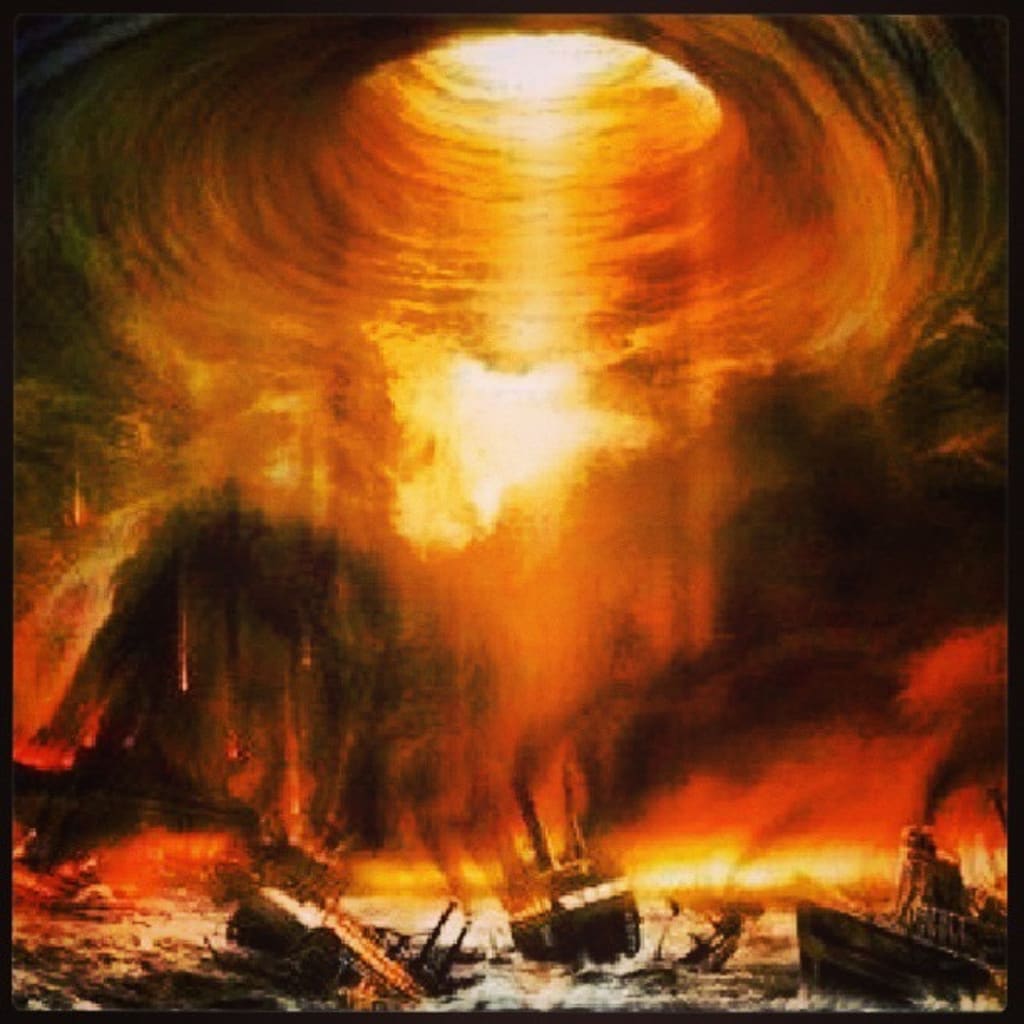 Crashed ships, slowly sinking into the abyss of the pacific underneath that violent eye. The inevitable stares at you, making escape futile, and your heart torn.