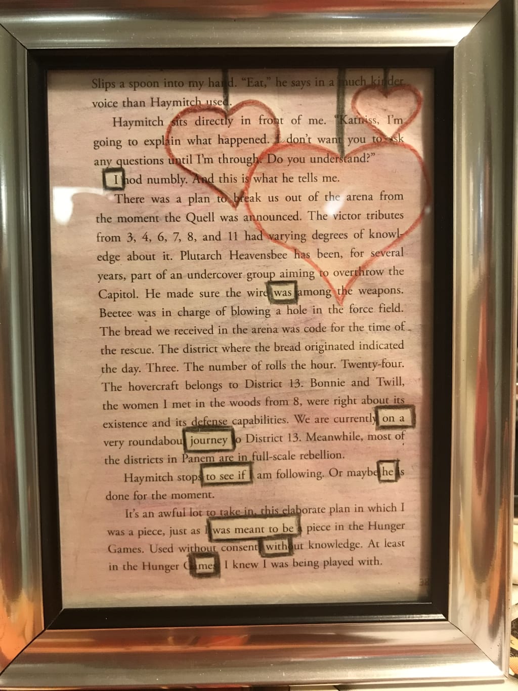 I have many blackout poetry pieces that I have created over the past five years that I do not know what to do with them all. There are nights that I cannot sleep or times when my emotions are just too much and I spend hours creating and pouring my heart and soul into blackout poetry. I love that I am able to relate my feelings through poetry and incorporate art to complete the look of the piece.