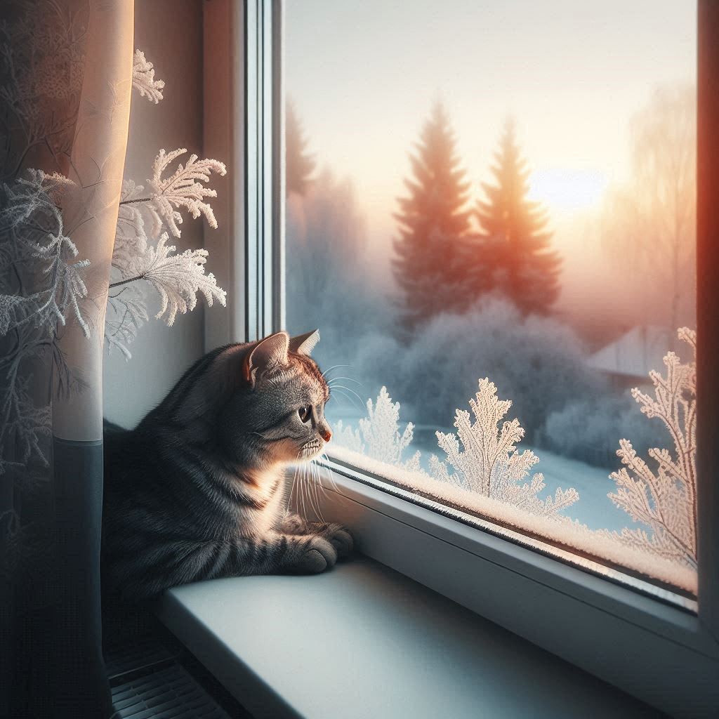 Where outside the window once flitted birds, a temptation to any Kitty's delicate palate, winter now paints a somber picture for a little kitten's lost pleasure. The birds have flown away, happy wings now seeking warmth.