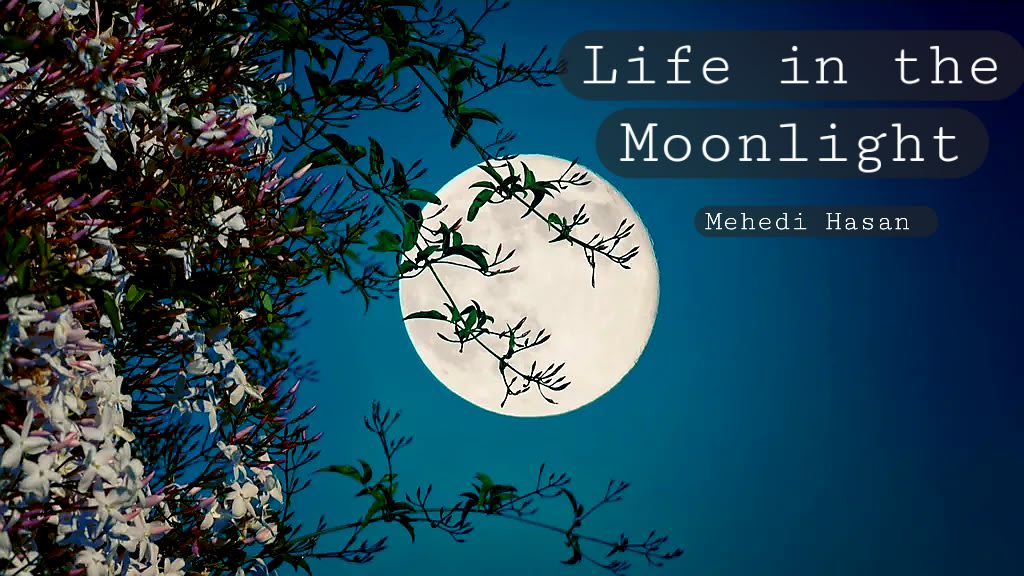 As if bathing all darkness in gentle beams. On the branches, flower buds softly smile, The silence of night floats on a sweet perfume's while.