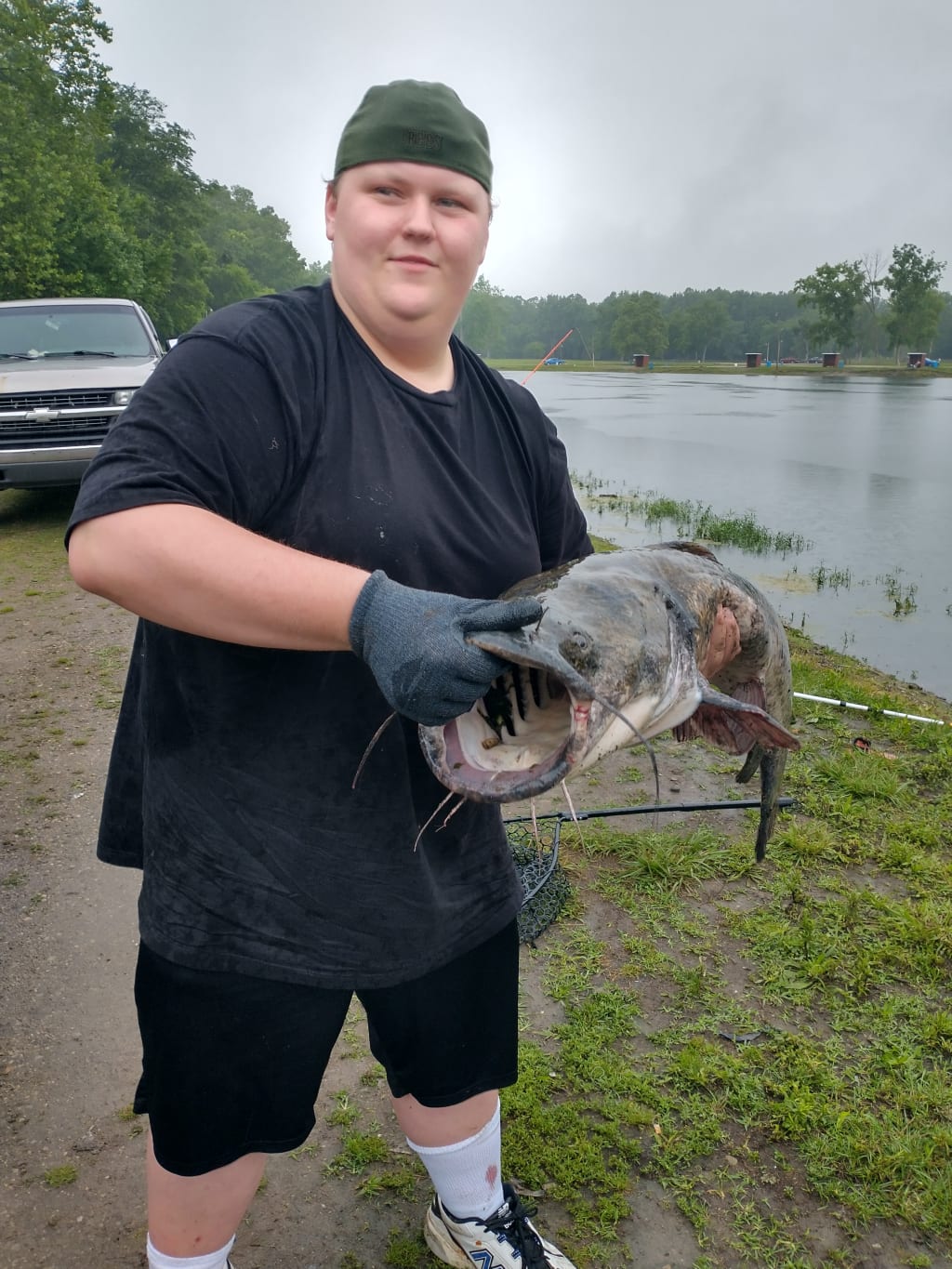 He pulls his arms back. Barely able to speak; “I got it.” he shouts.
