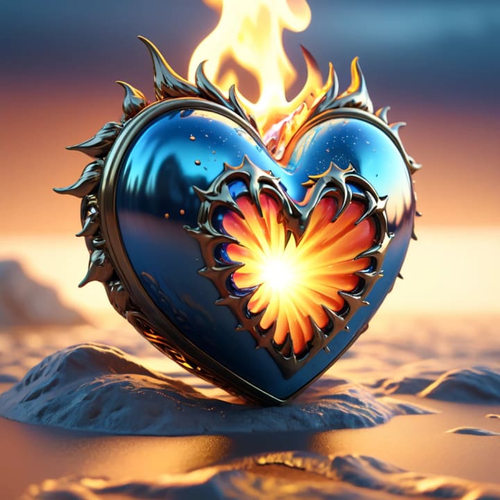 A heart aflame, the hero stands,