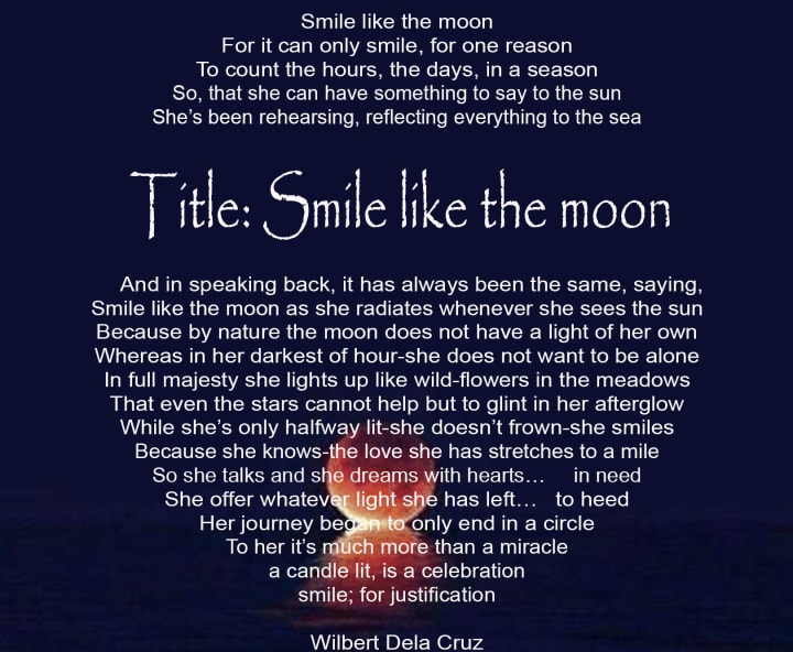I want to smile, as big as the crescent moon, especially after the shedding of the rain; leveraging the heights, to the very colorings of the rainbow, to where no other shadows can remain. I want to look at a single rose, and to know right away, who to give it to. I want to know how dreams are made, and which, from all the many illusions, are true. I want to know how to live like a king, with my heart, clinging to a promise, born inside a ring. For even now, as the world, turning to something, a lot smaller, while I, is so far away, from ever, even, getting taller. It is why I seek, to reach for all the color of my universe, to great expanse, to the very sowing a seed into a verse.