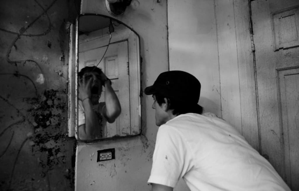 Staring at the mirror,