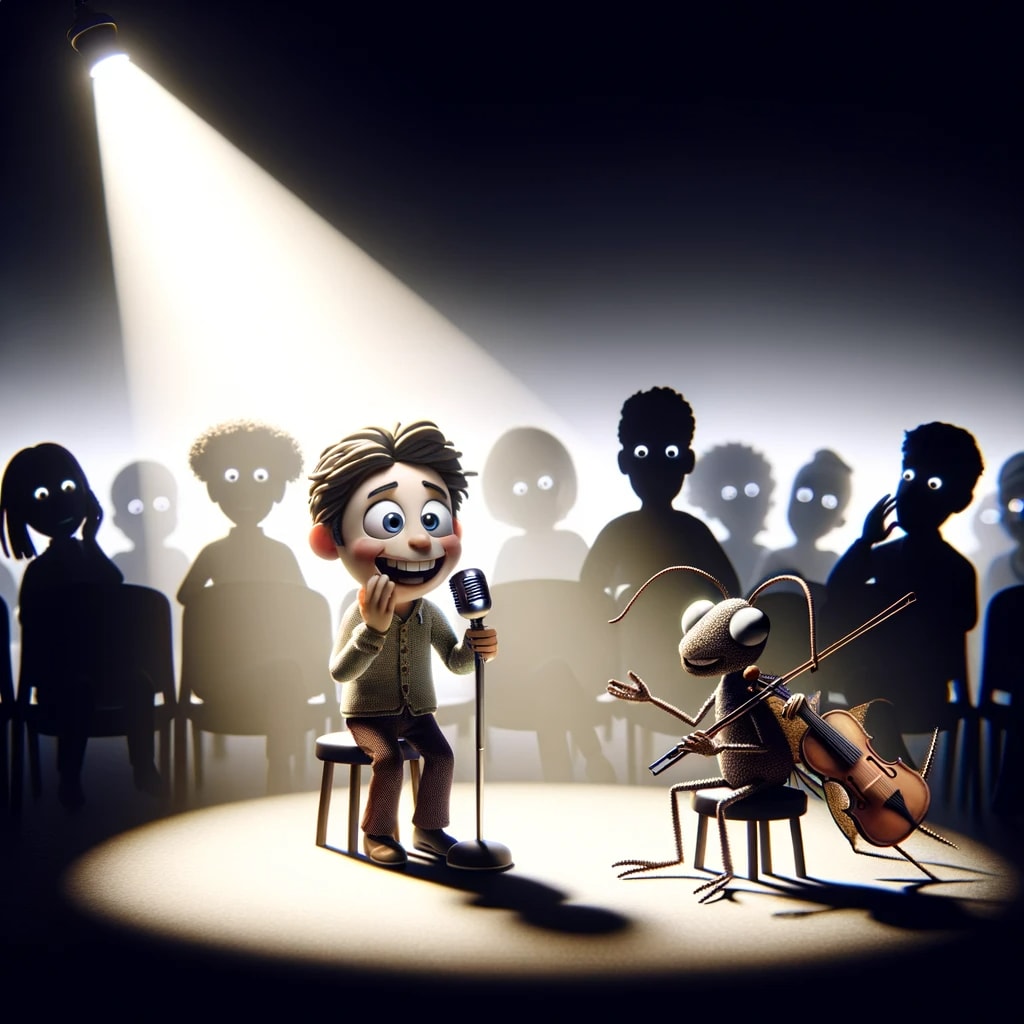Aww, poor comedian! I love how you worded this, painting the visual and awkward feeling through the character's actions!