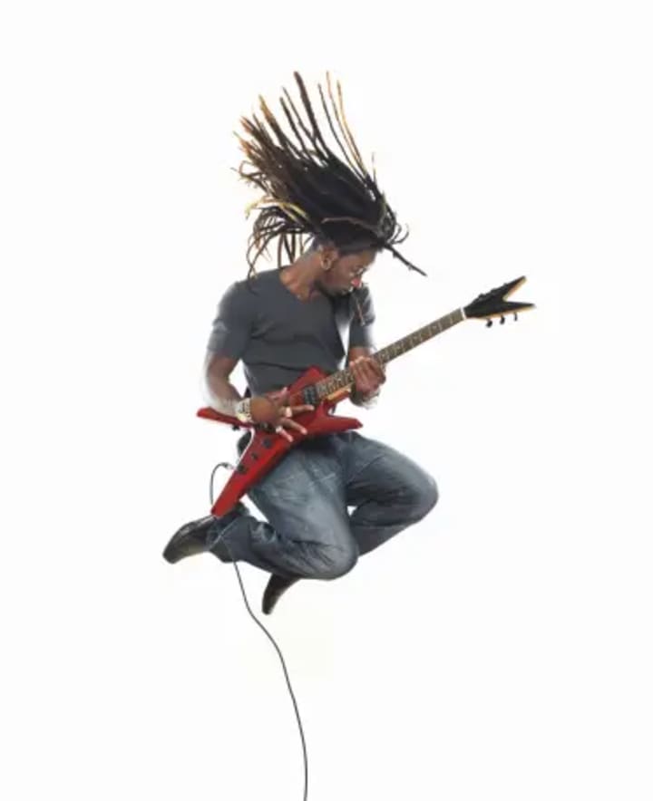 Suspended in time, the guitarist holds his tune, his melody perfect