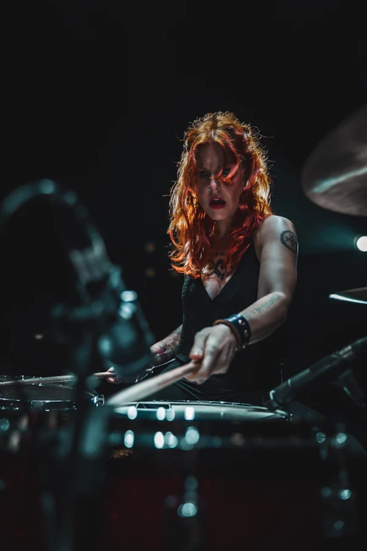 The drummer moves fluidly, arms expressing smoothly, her dulcet tunes