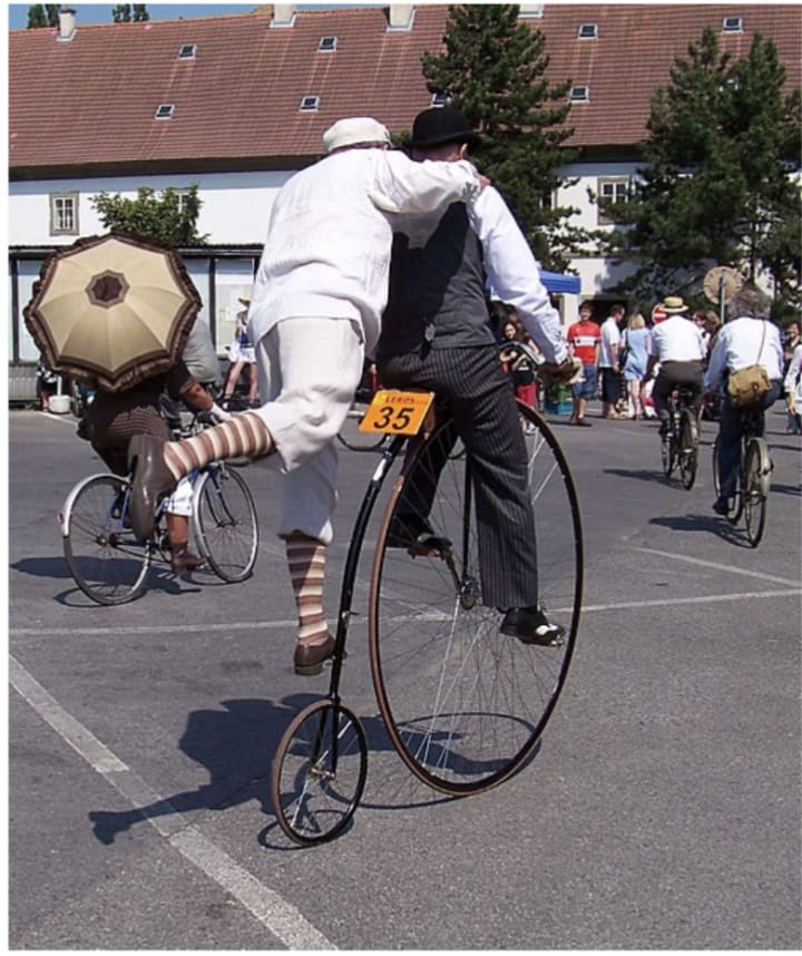 This is a “high wheeler bicycle“ funny isn’t it,? I know with that tiny back wheel. But this is what you are using at the moment, I mean where is the fun in that, you cannot wheel up a ramp and turn the wheel in mid air left to right. There are a few enthusiasts since we had a Germ warfare in 1990/2020 where it killed billions across the world but they are purly entertaining or a Gentleman Club