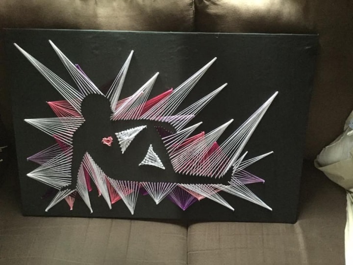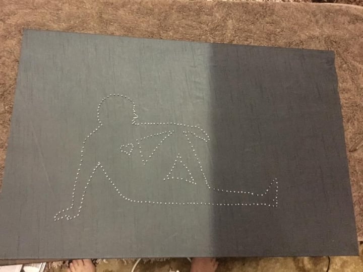 Using the embroidery string and nails together