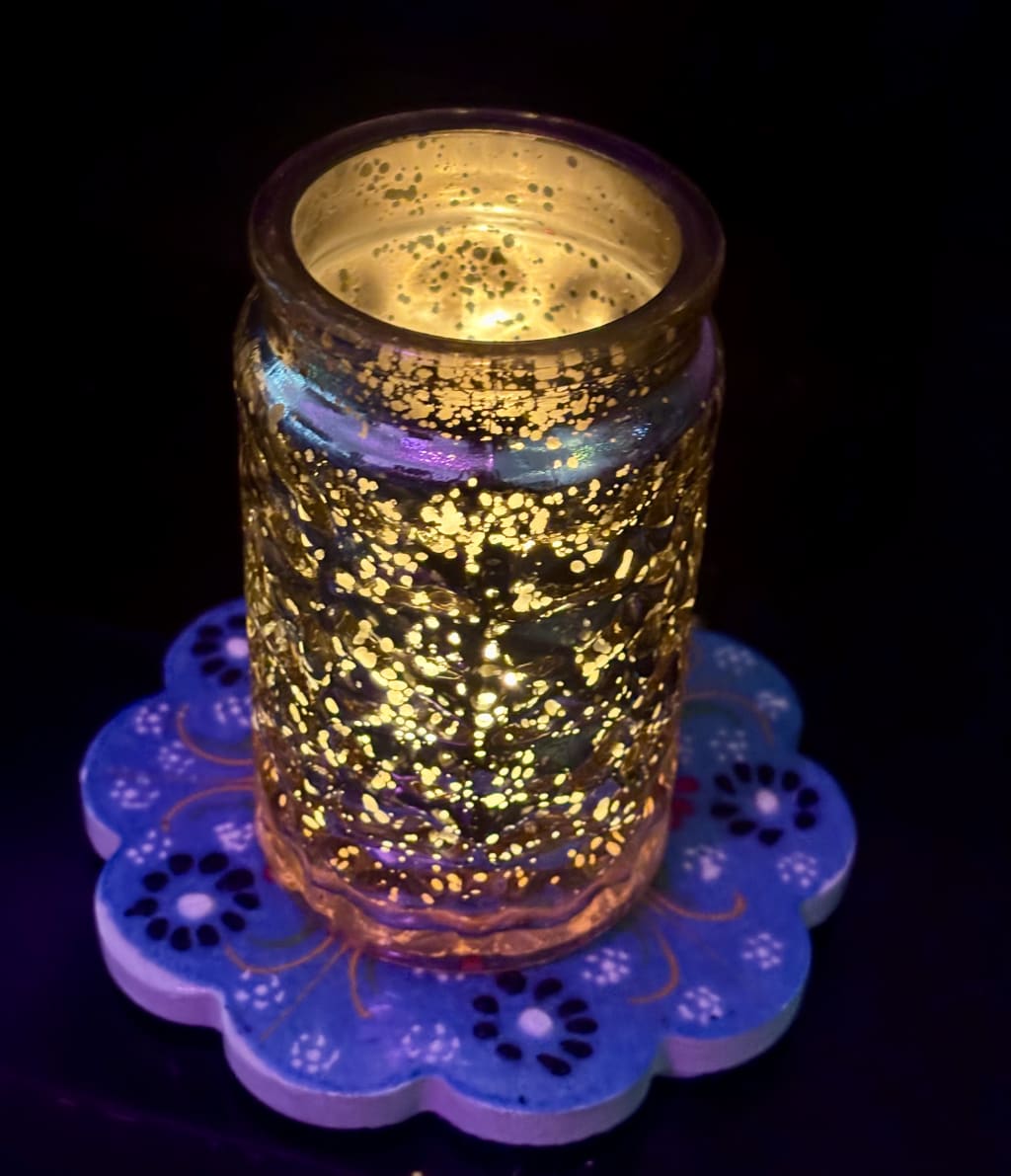 Your mother gifted me a candle in a gold jar.