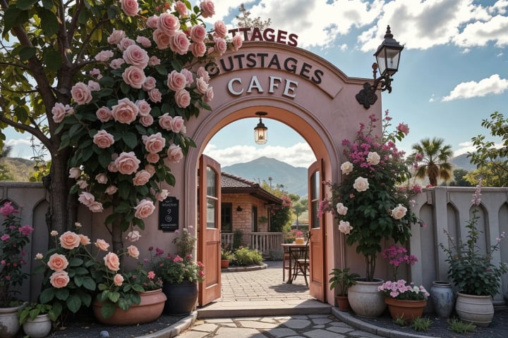 In a quiet corner of California, tucked between memory and melody, there stands a pink archway blooming with roses and musical notes. Locals call it Outstages Café, but those who’ve gone through know it’s more than a place, it’s a portal.