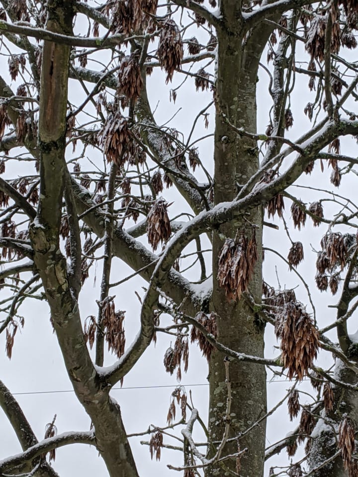 Written in the morning of 26th January 2021. It had been snowing on and off for a couple of days prior. I was looking out of my window onto what was left of the snow on the trees that had been almost completely covered.