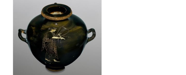 Sappho playing a lyre, from around 510 BCE. National Museum, Warsaw via Wikimedia Commons