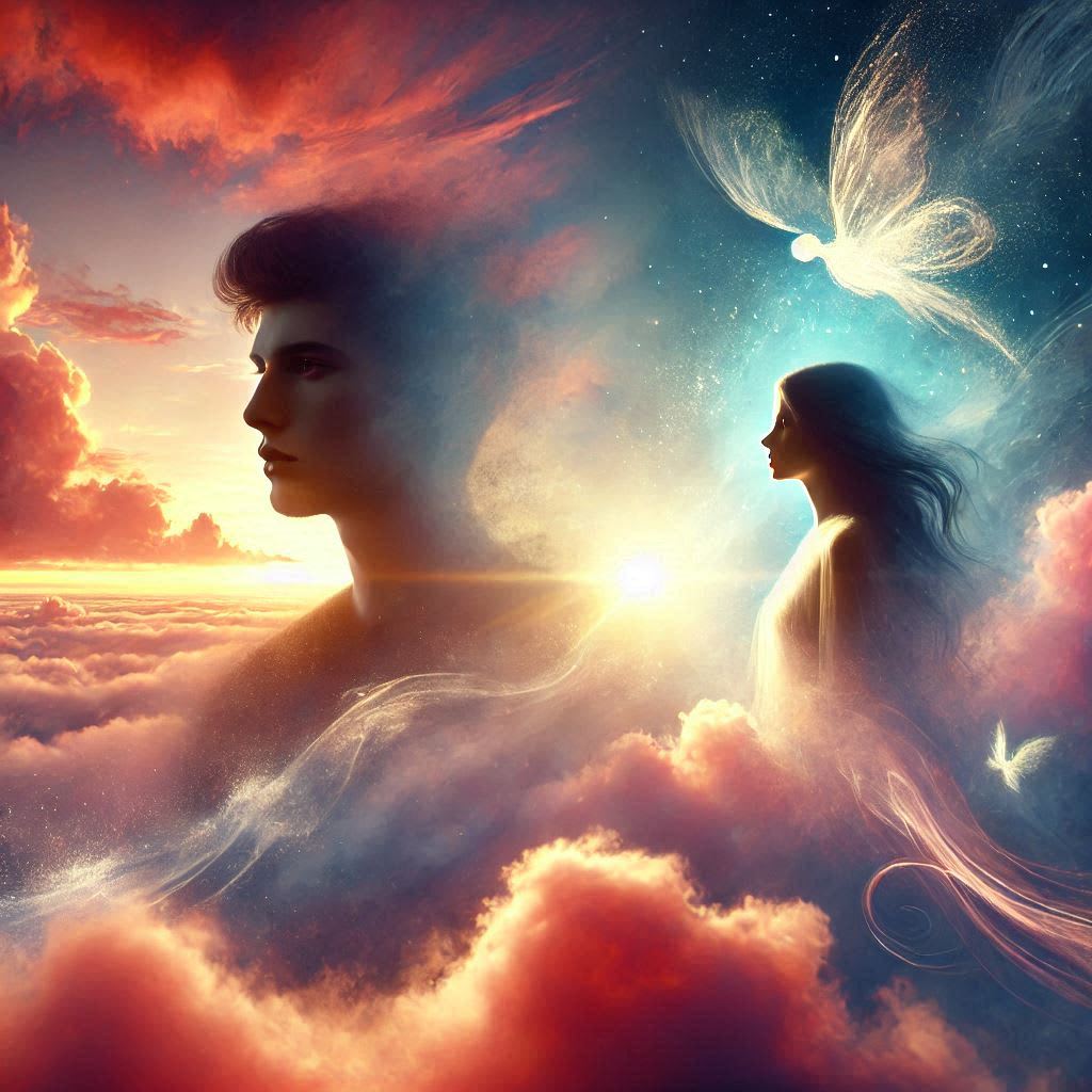 One gazing back into a misty, memory-filled past, the other looking forward towards a shimmering, hopeful future.