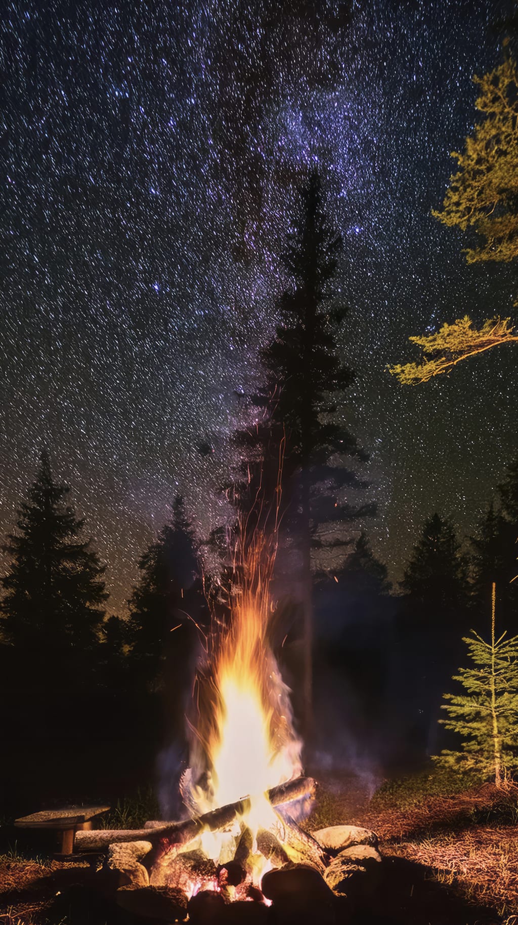 Beneath the stars, the flames speak low,