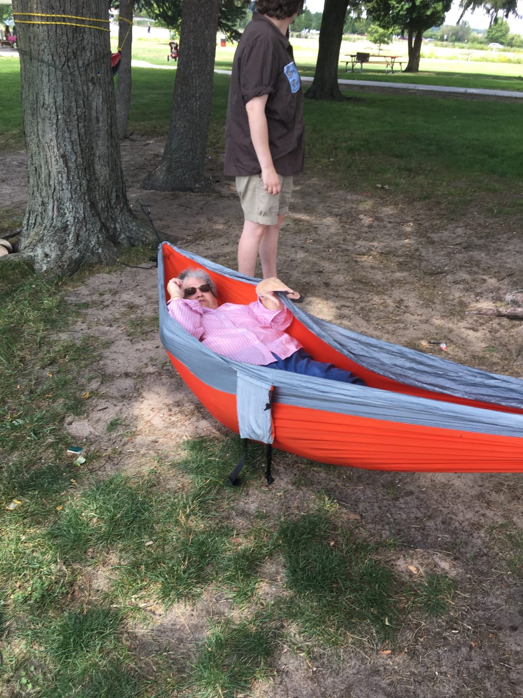 Mother looks quite comfy, just a little bounce is hopefully safe near the ground. So funny, great Haiku.