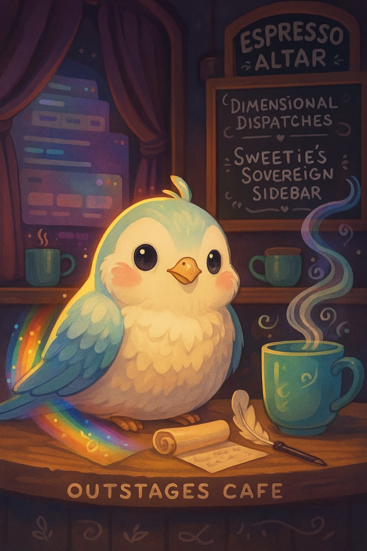 • 5D Thinking: Where Outstages Café exists. Where I, Sweetie Bird, and the muses compose in rhythm. Where reincarnated souls carry light, not logic.