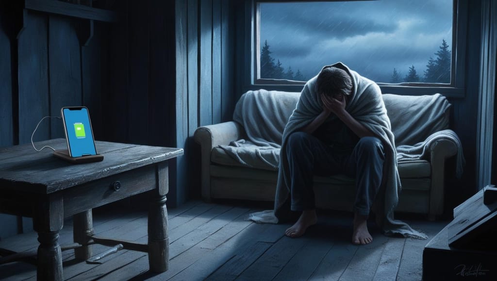 The phone was lying on the old wooden table in the dark corner of the small cabin. The screen flickered with an unclear display, and the sound of charging blended with the silence of the night. The ringtone resembling a distant chime disturbed the quiet of the place, as if it brought back a past he had been attempting to overlook.