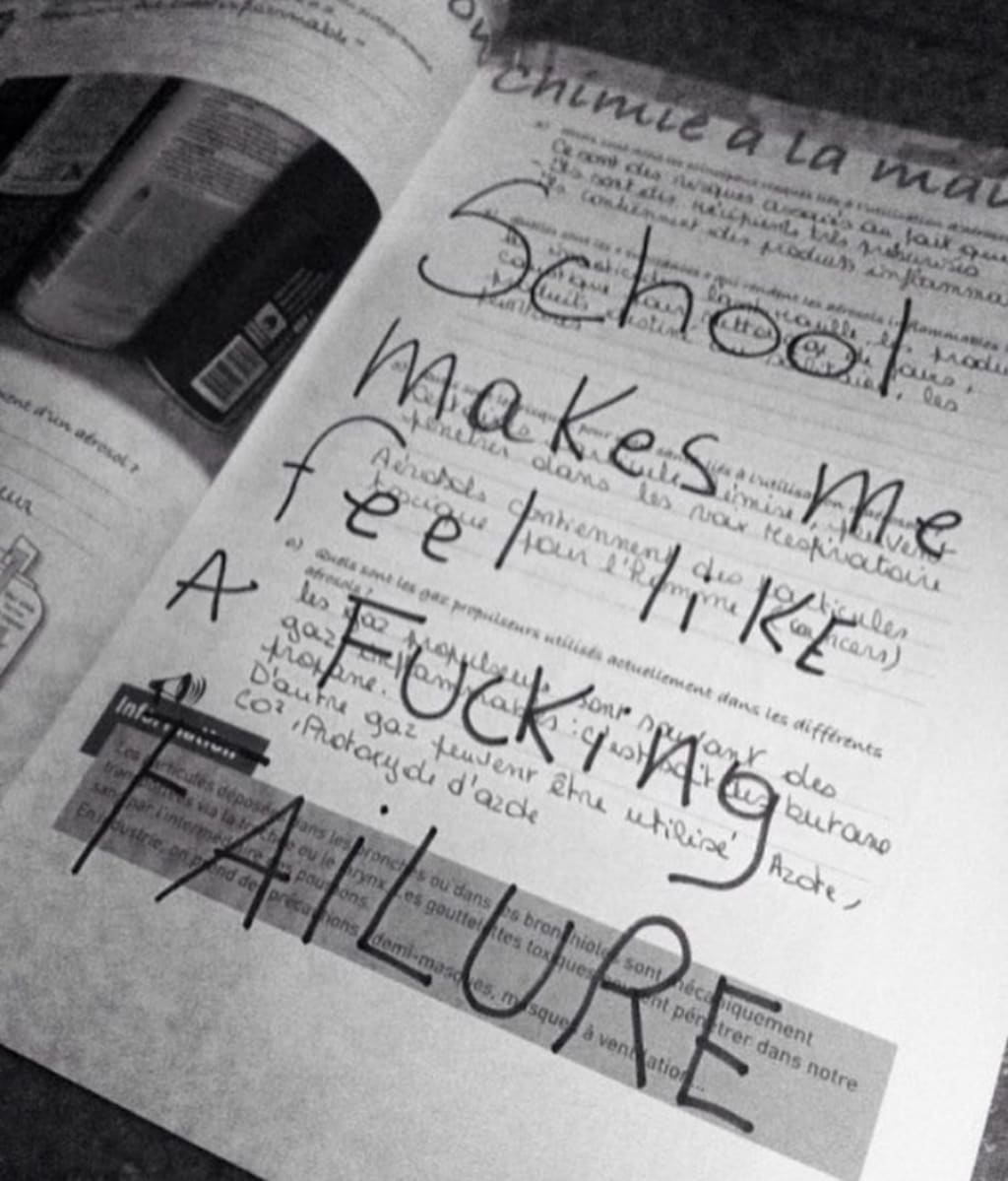 School the place you go to just waiting for it to end. Your eyes never leaving the clock because that’s more entertaining than the blabbering teachers. The people that act as though they are your rulers and you must obey and believe everything they deed into your brain. Don’t even think about standing up for yourself because parents can be so much worse. School is like a war ground, fights, lectures, bullies, all until that clock strikes three and we can leave. The hot, crowded buses, the long car rider line, the line kids who sat forgotten at the lunch tables. Once Home the agonizing stress, anxiety, depression that comes with all those assignments that come crashing through your head at all hours of the day. But don’t even think about forgetting one, not doing one, failing one because if you even consider any of these the hell you experience at school comes to fuck up the rest of your life. You parents act as though you're a disappointment, failure, slacker when you can’t catch up with all the shit and disorders crowding your brain. They don’t see how much you are drowning, they just see a failure who can’t swim and instead of helping you. Maybe throwing you a raft they create waves. They create storms that throw you around like you are a piece of paper until you learn your place. Until you learn that you are nothing more than a grade. A number score that defines who you are and who you are going to be. If you can’t learn to swim than you get forgotten. You get left behind by all those who you thought loved you. If you slack of for even a day than you are seen as lazy, a failure who can’t get off their goddamn phone for even a minute to do your work. So you can make yourself swim and be that little puppet that everyone expects you to be or you can drown and be hated by everyone. There is no third option, there is no second chance. And once that weekend finally comes around it’s gone in an instant. When summer finally comes around it lures you into a false sense of security. Causing you to forget everything creating that hellscape every wretched year after wretched year. It doesn’t end, it doesn’t get easier, it just changes it’s looks and comes back the next year. And once you get a job you don’t get summers off, jobs never end until you are to old to live by yourself and your life is wasted away.