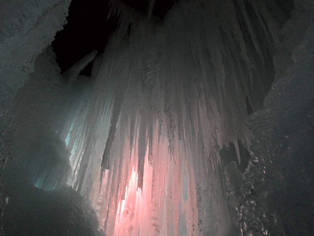 Hidden beneath an impenetrable cage of icicles.