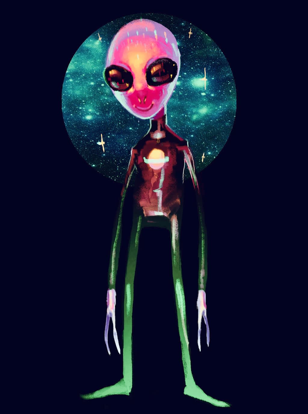 The alien’s tears cleared, while smiling at me,