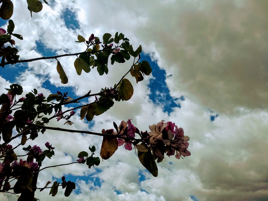 Orchid tree and clouds. Photo copyright by B.B. Potter.