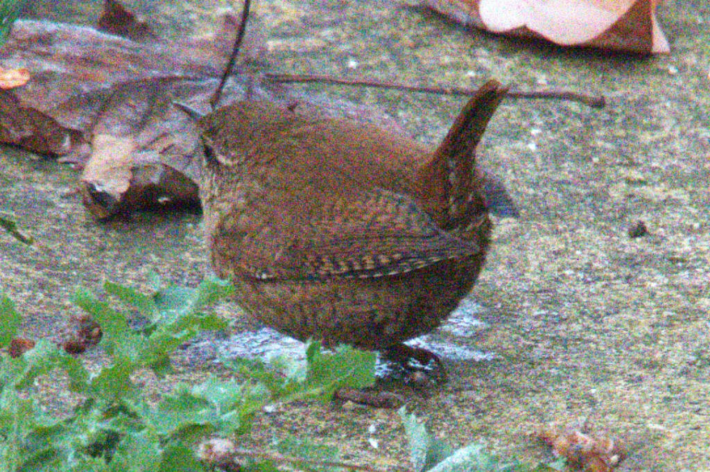 The tiny wren lands nearby,