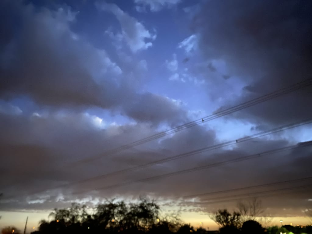 I stood and watched the sun fell behind ominous grey clouds that merged against an obsidian night sky. Wind howling from every direction disturbing the peace of wilted leaves. Leaves that once rested upon the ground now rustled hastily across the cement of the sidewalk beneath my feet. I walked alone and listened to the trees. In a way, they were almost speaking to me. But Whispering sweet nothings? Or warnings of some strange passerby who might sneak up behind me this eerie night? I never did find out.