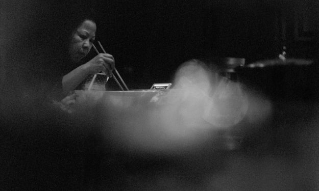 For once, I don't care about my shadow. I do not watch it dissolve into quiet jade earth. It is too late to turn around & ask questions against the light. It is late dusk when the mountain range, first to darken, is stripped of boulder and definition until it is as flat as the porcelain moon growing inside. So black that it is no longer a mountain, but a mouth, a tunnel dug into the clear coral hour. Where is the way in? the pale breeze carries only salt in-