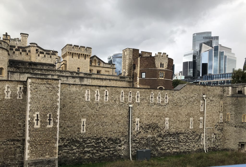 Tower of London, Eastern wall, financial buildings in the background. Photo: RGT, 2024