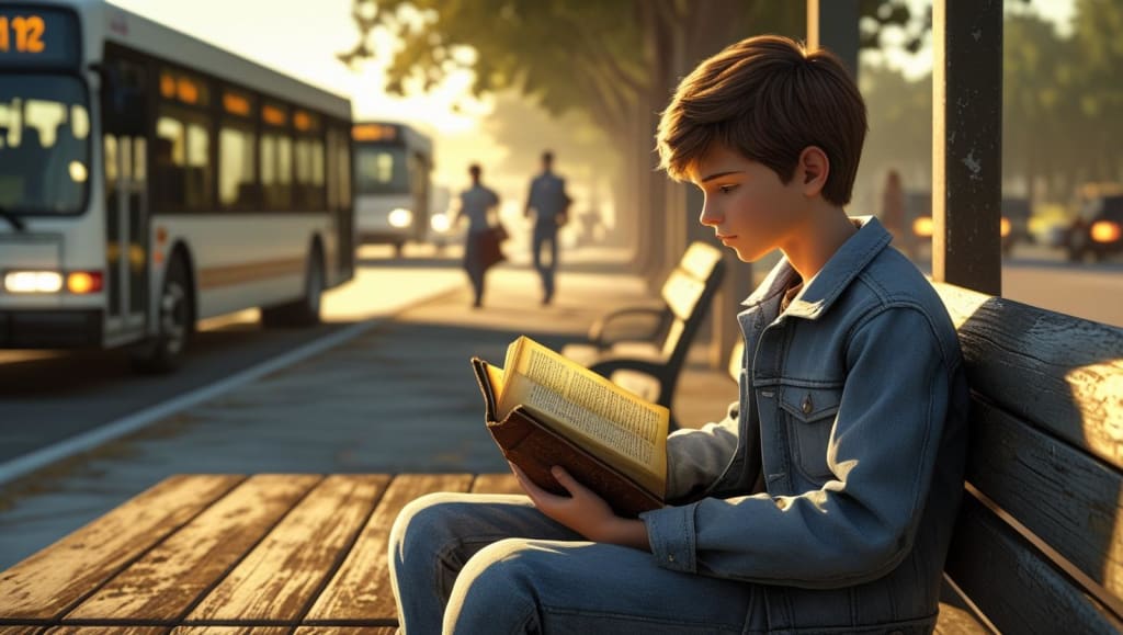 It was a regular afternoon. I was waiting at the bus stop after school, scrolling through my phone like always. I was bored, impatient, and slightly annoyed because the bus was late. As I looked around, my eyes fell on a small, worn-out wooden bench nearby. On the bench sat a book—alone, dusty, and clearly abandoned.