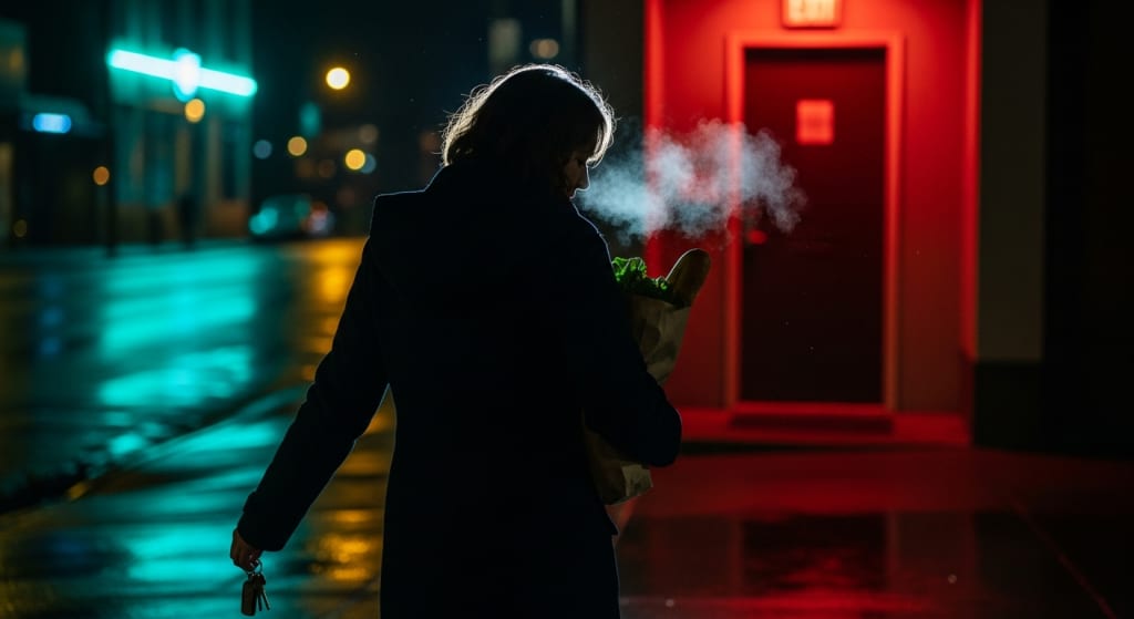 The hallway light blinked like it was tired too,