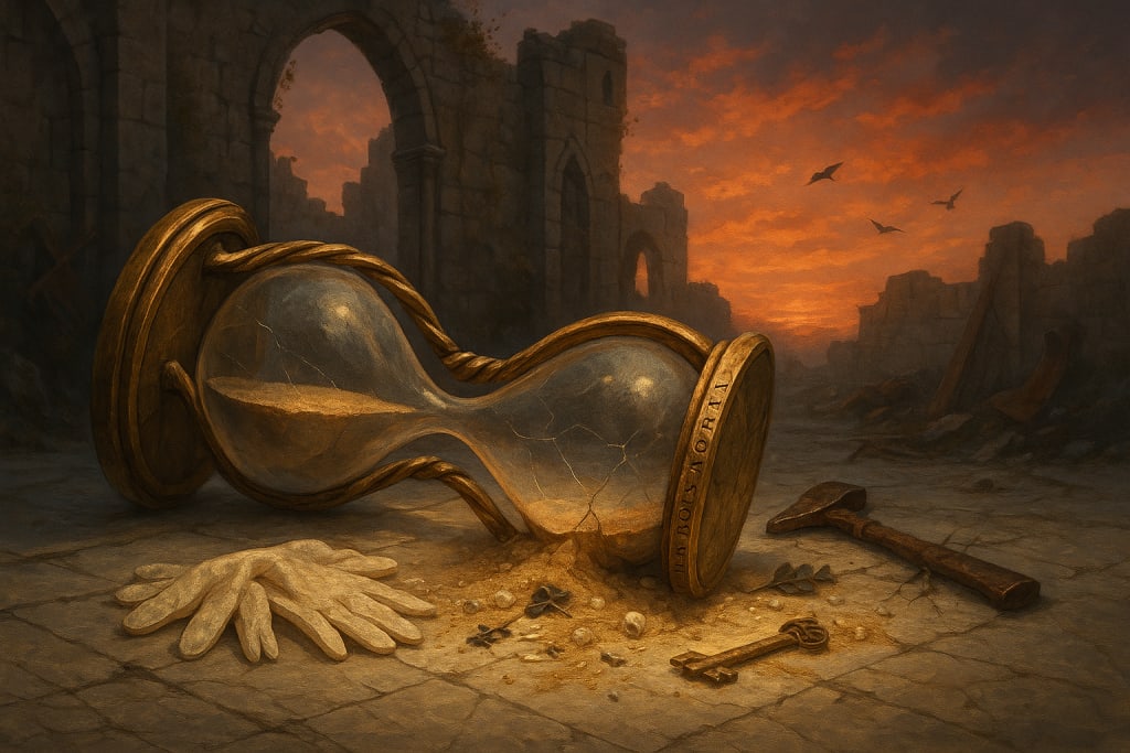 The hourglass, uninfluenced, kept bleeding seconds.