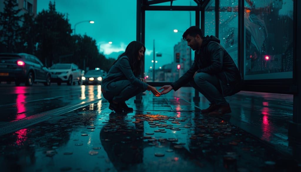 I dropped my coins at the bus stop