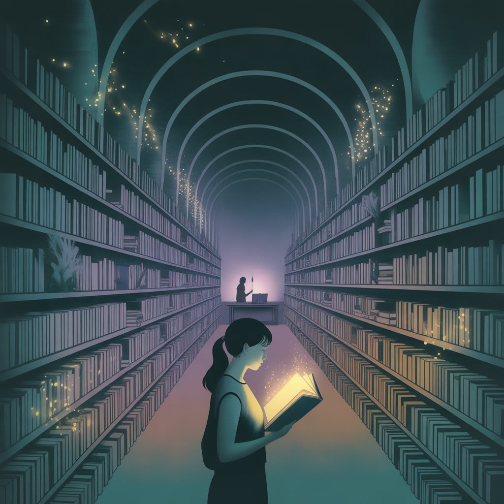 He gestured toward the nearest aisle, where a single book had appeared at the edge of a shelf, glowing faintly. Its cover was blank except for her name stamped in silver.