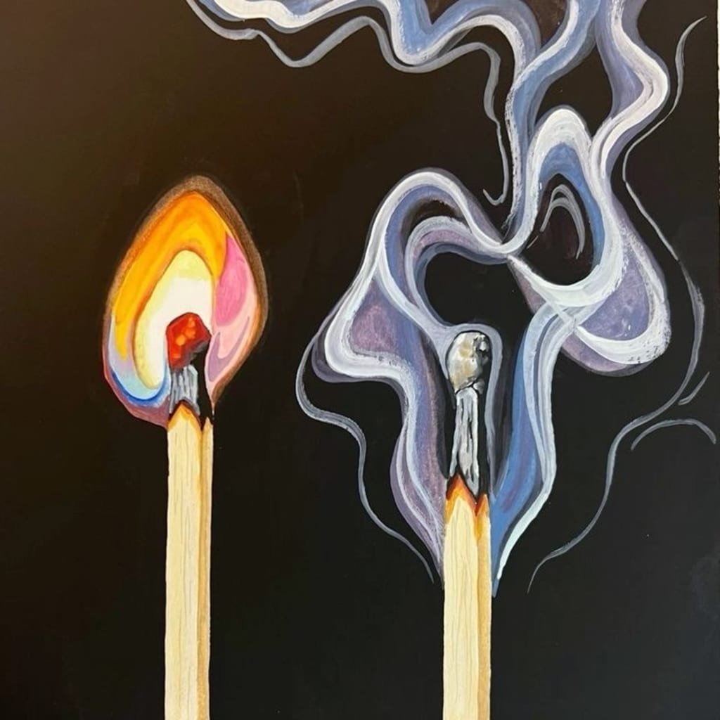 the flame catches, almost as bright as his smile once was.