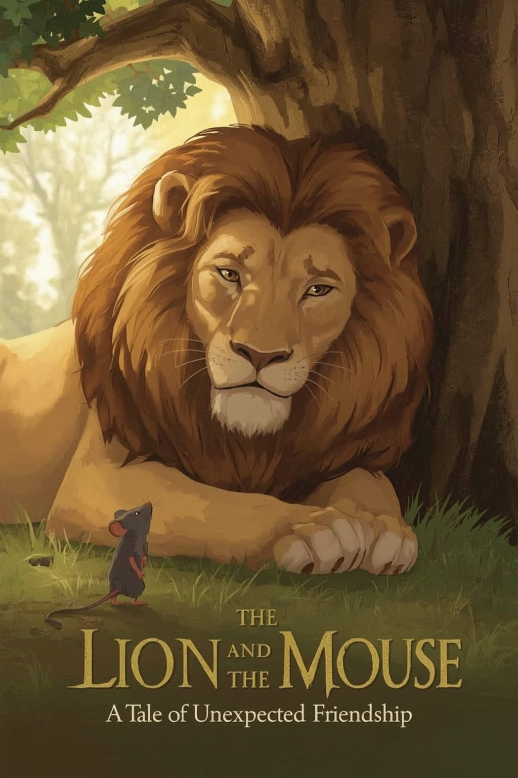 Not far from where the lion made his home, in the roots of a great old tree, lived a small gray mouse named Mina. She was quick, clever, and always full of curiosity. While most creatures avoided the lion’s territory, Mina often wandered close, fascinated by the great beast she had only seen from afar.