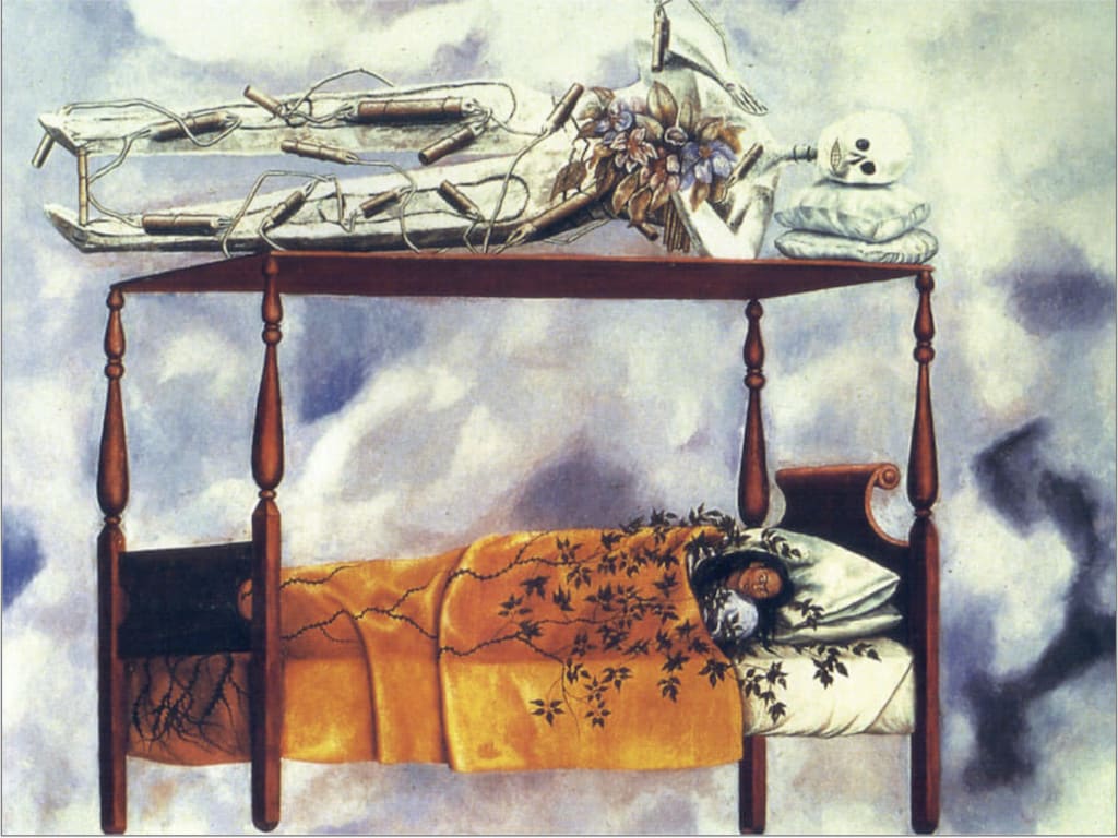 I am a huge fan of the artwork of Frida Kahlo and thought that this painting of hers - which is called "The Dream" - paired with my strange, existential adventure quite well. Frida Kahlo is considered one of Mexico's greatest artists.