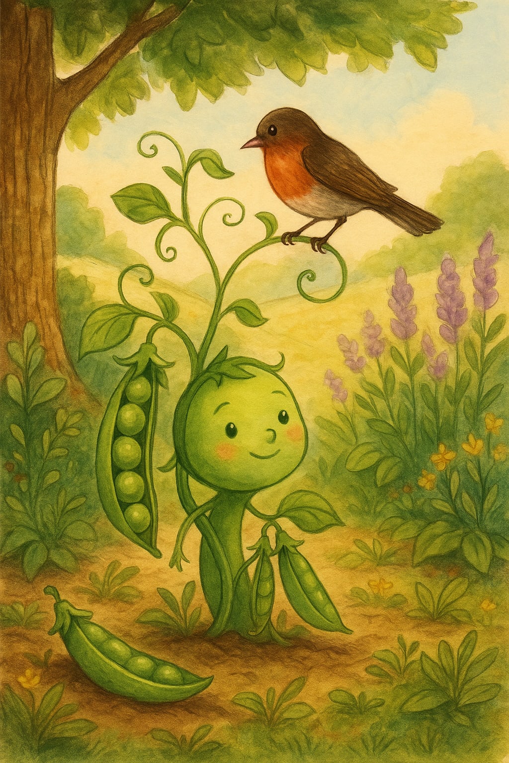 In the back garden of an old brick cottage, where bees hummed like sleepy violins and dandelions tickled your ankles, there grew a line of cheerful pea plants. They climbed little sticks like eager acrobats, their green tendrils curling and stretching toward the sky.