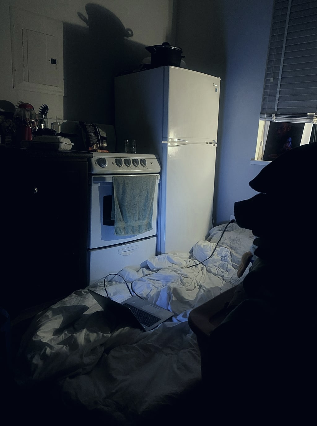 I double check the door is locked behind me when I return to the quiet floor bed in my kitchen.