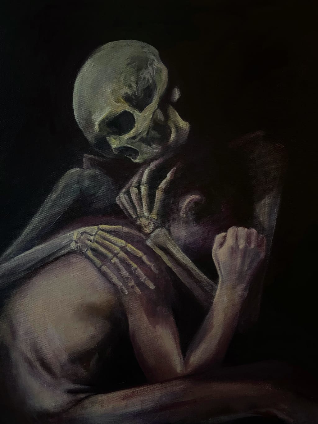 The shadow wrapped figure drew near, and my breath became ragged with fear.
