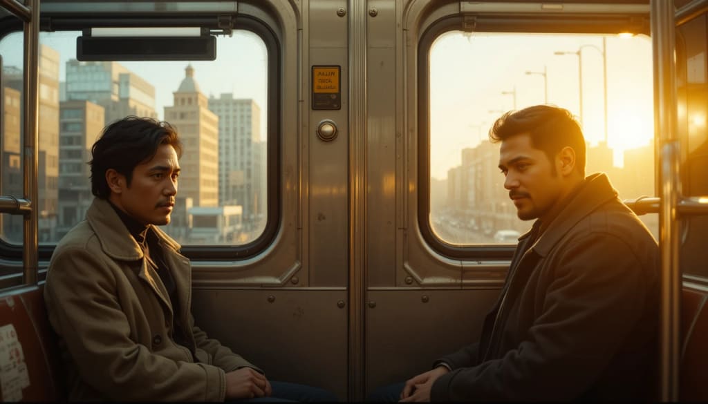 It was one of those evenings when the city felt like it was exhaling — not quite asleep, not fully alive. The 6:47 PM train groaned into the station just as I reached the platform, breathless, coat flapping behind me like a half-forgotten wing. I slid into an empty seat, grateful to have caught it. Another day survived.