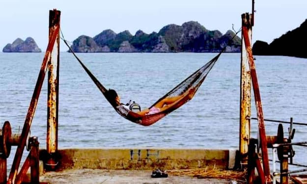 their feathers bathing the bottom of her feet as she rubs soft stones through her toes