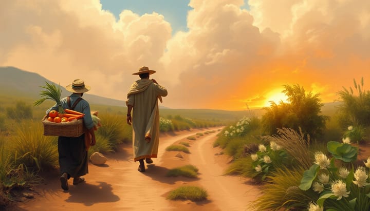 One morning, the brothers decided to take their harvest to the city market to sell. They carried their loads of produce and began the long trek down a dusty road. Along the way, they encountered a merchant who offered to buy Mandy’s share of the produce for half its market value.