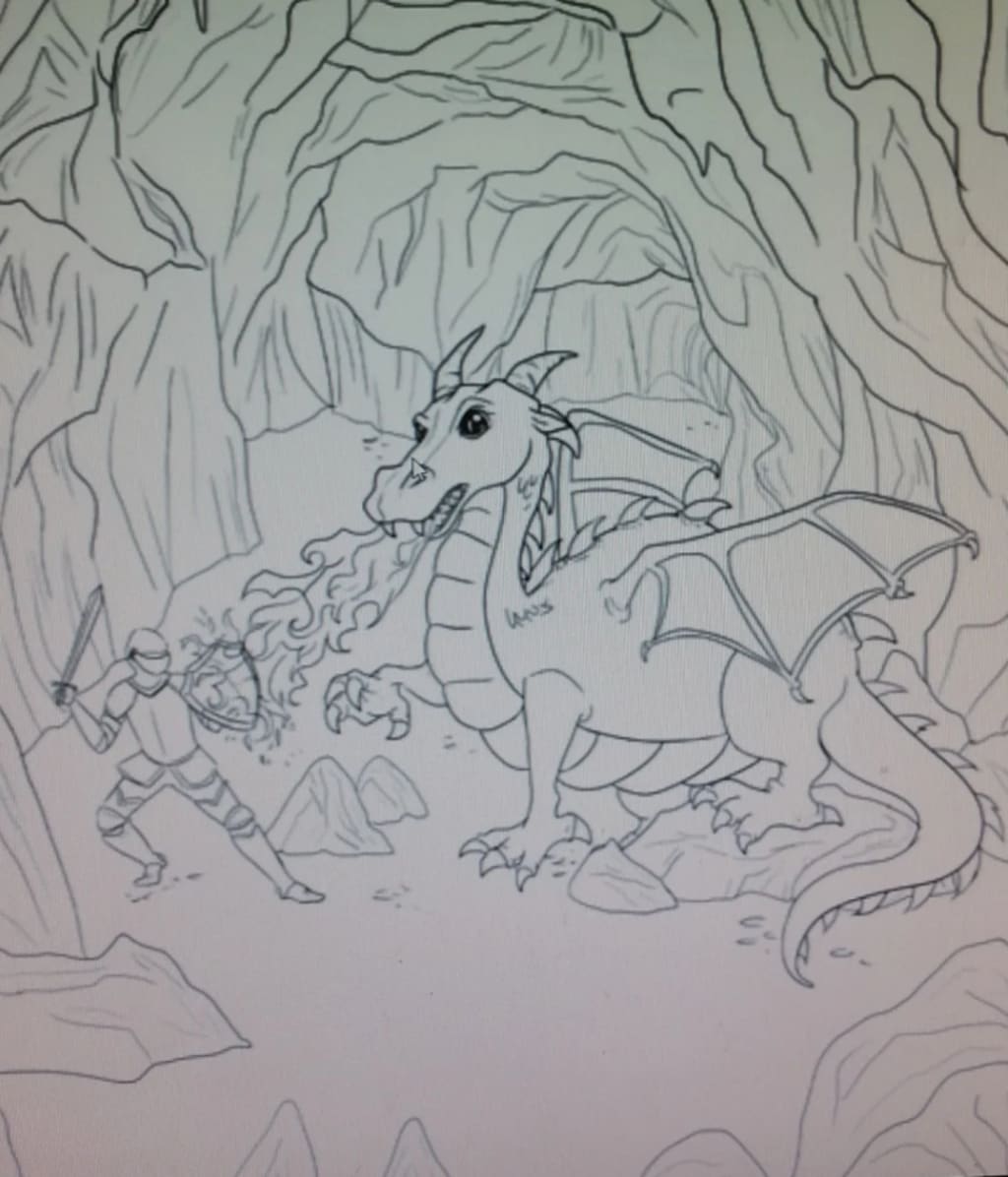 Into that crack, so little and small, he thrust in his sword, once and for all, and to his surprise and the dragons dismay, our knight somehow... won the day.
