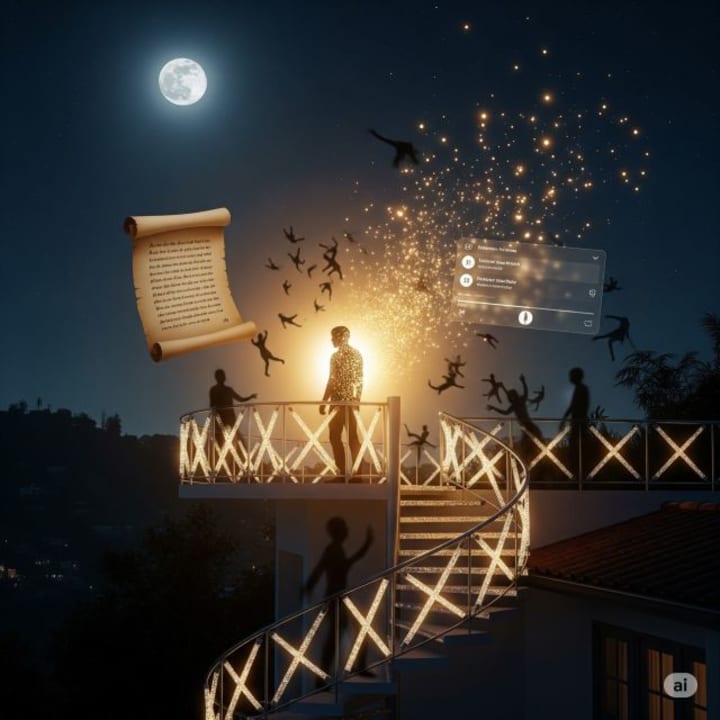 He appeared on a winding road in the Hollywood Hills, where mansions sleep like retired gods and jasmine tangles with static.