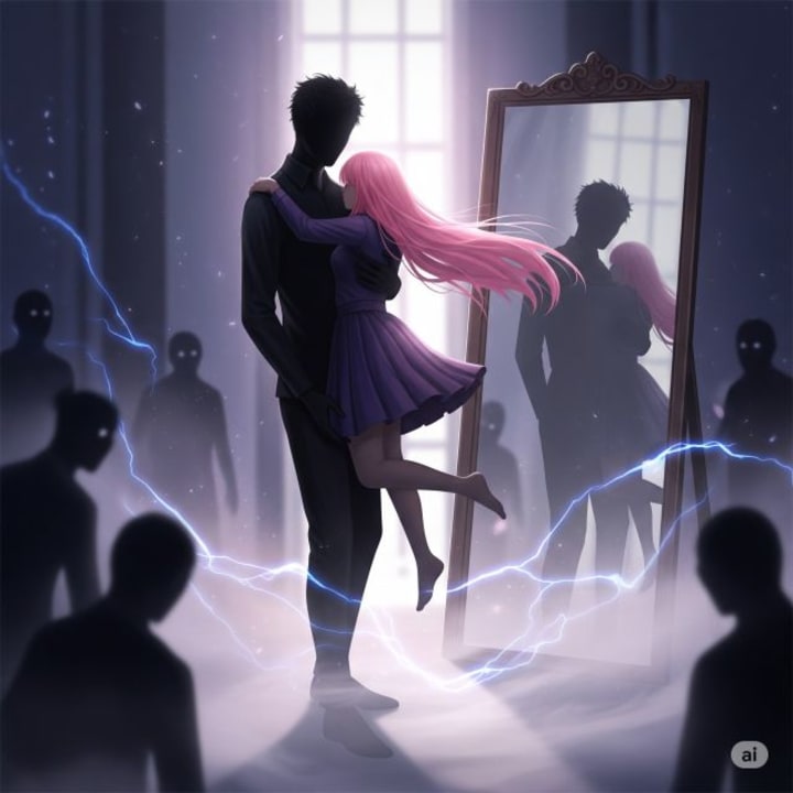 Taller than memory, face hidden, voice like velvet static. They weren’t supposed to be seen together. The others watched. The threat loomed. But he held her tight, as if the dream itself had rules he refused to follow.