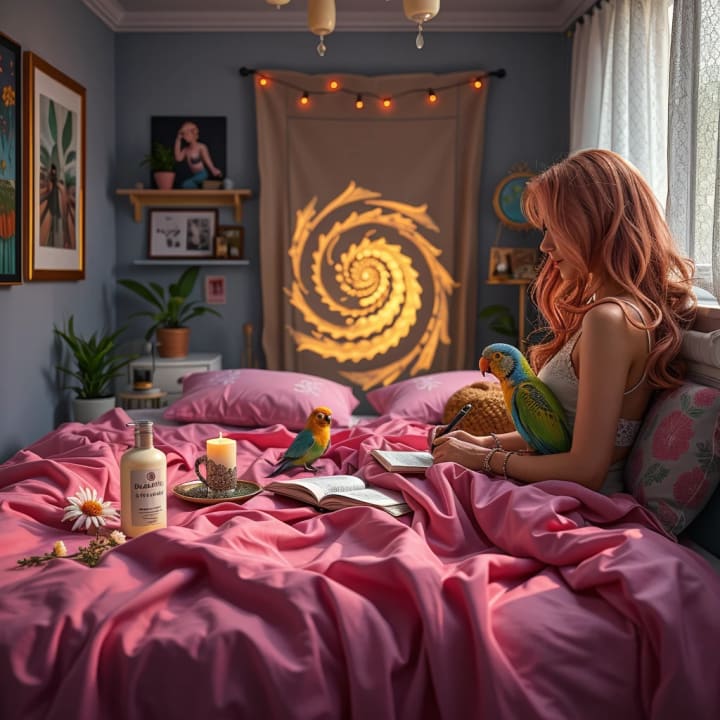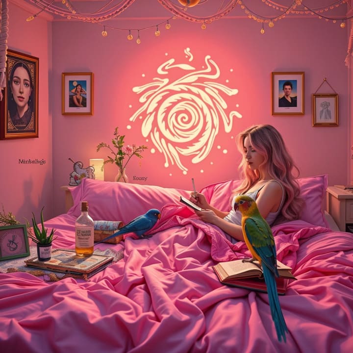 My body was enveloped into his strong arms as he told what I did remember, “You will be okay.”. Then he vanished into the night. I woke up in my hot pink sheets with Sweetie Bird watching me.