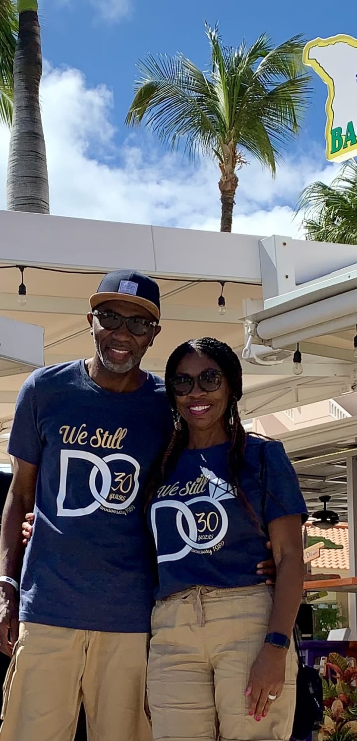 The most challenging period of my life was during my twenties. It was also a period I experienced three significant life-changing events; giving birth to my eldest daughter at twenty-one, accepting Christ as Savior, and meeting my future husband at the age of twenty-nine. I would be remiss not to mention my husband" role in my transformation. I came into the relationship with a lot of baggage, and he helped me unpack each one. He's my number one cheerleader to this day. Through him, God has allowed me to see and feel His love. We have been married for thirty-Two years. Below is a picture celebrating thirty years in November of 2019.